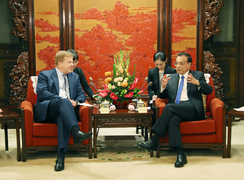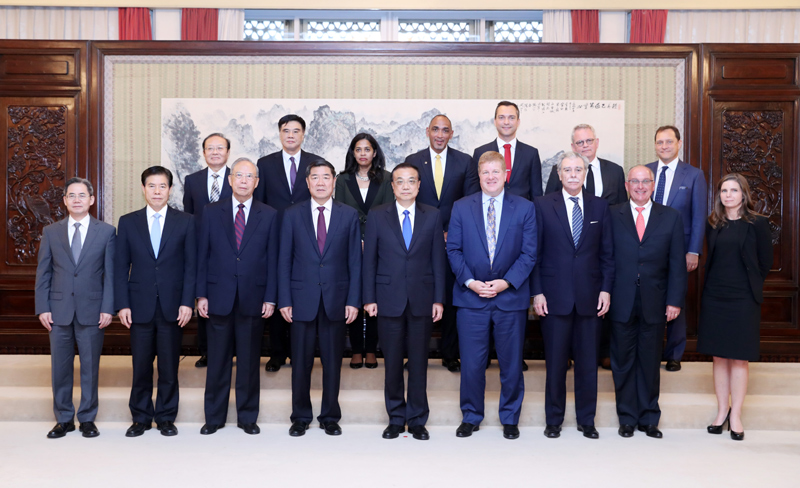 李克强指出,中国对外开放的大门会越开越大,正在致力于打造市场化、法治化、国际化的营商环境,对在国内注册的内外资企业一视同仁,更加重视保护知识产权。中国的制造业已经全面放开,服务业开放也在加快推进。中国拥有广阔的市场,欢迎包括美国在内的各国企业扩大对华经贸投资合作,更好实现互利共赢。