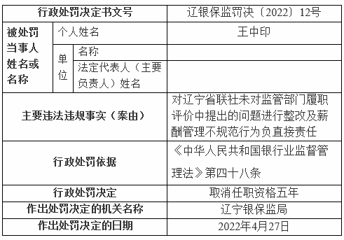 辽宁省农村信用社联合社原理事长王中印案细节通报