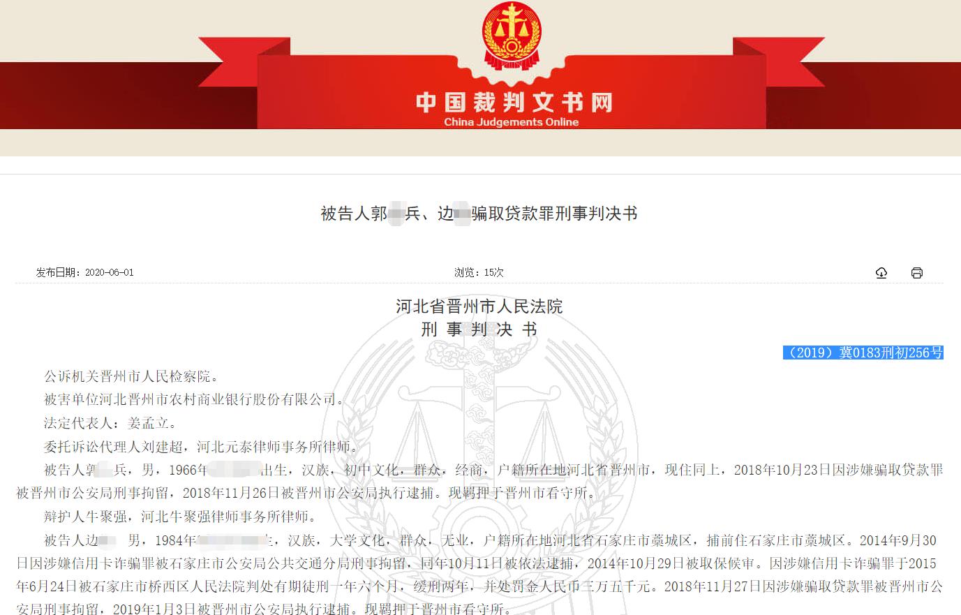 伪造资料从邢台银行贷款6000余万 三名男子被判骗取贷款罪
