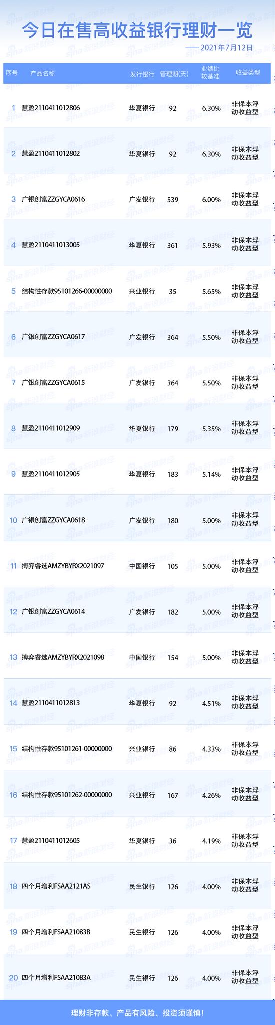 银行12日在售高收益理财产品一览