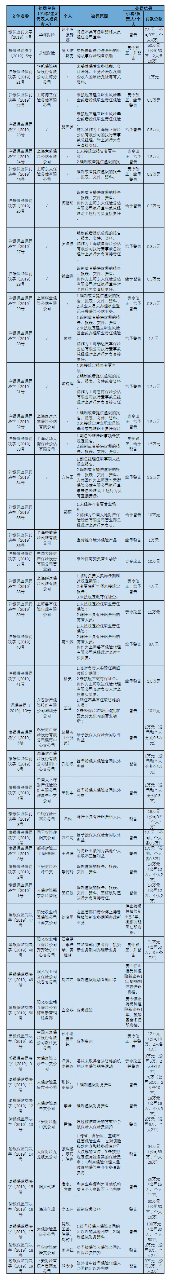 受罚原因主要为,虚列费用、编造虚假材料、利用业务便利为他人牟取不正当利益、未对从业人员进行执业登记、宣传推介境外保险产品等。