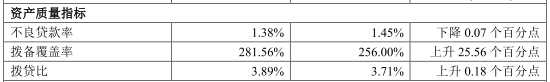 资产质量方面,截至2019年6月末,杭州银行不良贷款总额53.51亿元,较上年末增加2.66亿元。不良贷款率1.38%,较上年末下降0.07个百分点;拨备覆盖率281.56%,较上年末上升25.56个百分点。