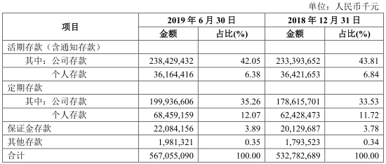 截至2019年6月末,杭州银行客户存款总额5670.55亿元,较上年末增加342.72亿元,增幅 6.43%。