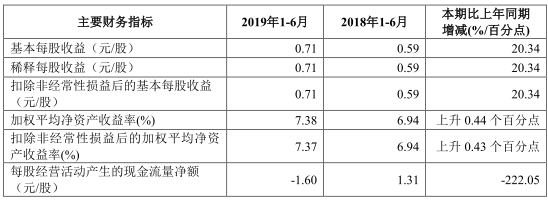 上半年,杭州银行加权平均净资产收益率为7.38%,较去年同期上升0.44 个百分点;扣除非经常性损益后的加权平均净资产收益率为7.37%,较去年同期上升 0.43 个百分点。