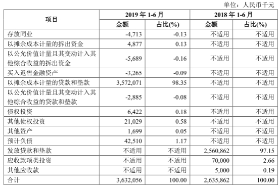 2019年1-6月,杭州银行计提信用减值损失(原资产减值损失,会计政策调整)36.32亿元,同比增加9.96亿元,增幅37.79%,主要为以摊余成本计量的贷款和垫款,金额为35.72亿元,占比98.35%。