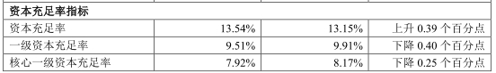 资产充足率方面,2019年上半年,杭州银行的资本充足率、一级资本充足率、核心一级资本充足率分别为13.54%、9.51%、7.92%,分别较上年末上升0.39个百分点、下降0.40个百分点、下降0.25个百分点。