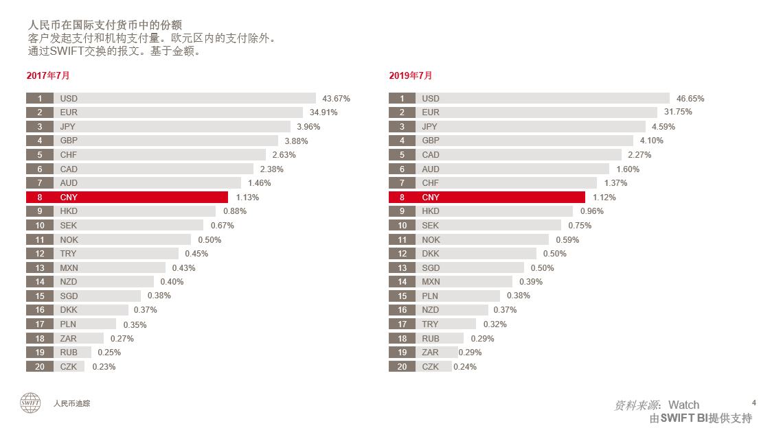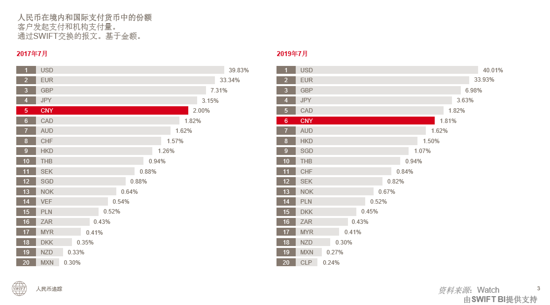 SWIFT:8月人民币在国际支付货币排名第五