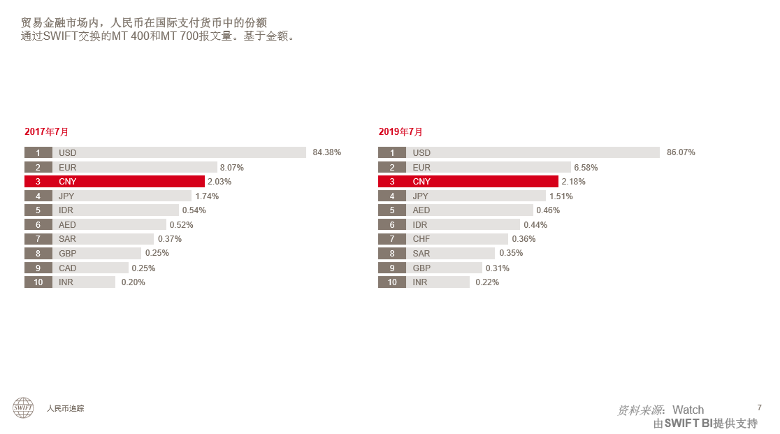 SWIFT:6月人民币为国际支付第五大活跃货币