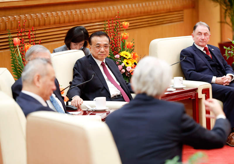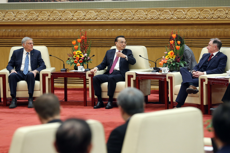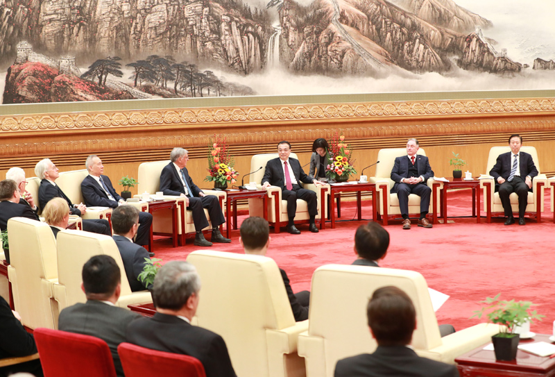 李克强会见出席中美企业家对话会的美方代表并座谈