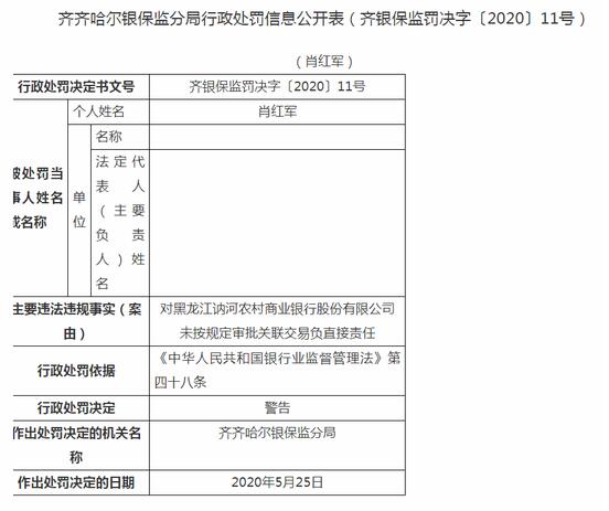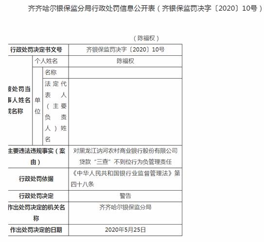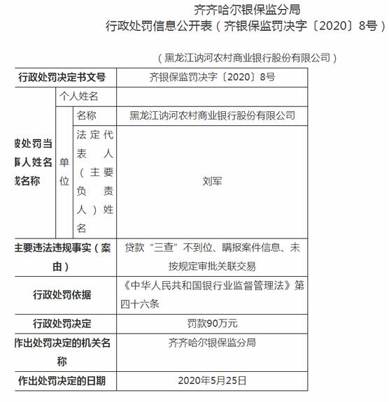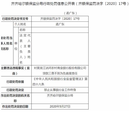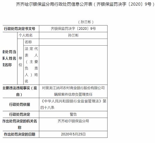 黑龙江绥芬河农商行被罚50万:贷款五级分类不准