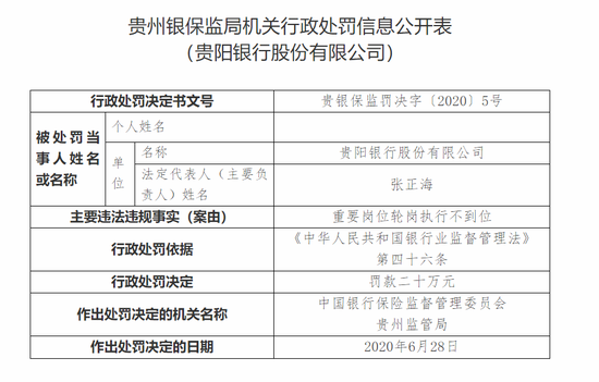 定增融资受阻、高管频繁变动 贵阳银行连吃十张罚单领罚260万