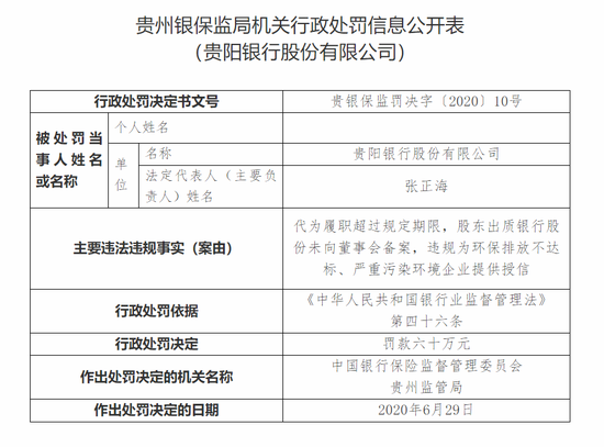 •   新浪财经讯 6月30日,贵州银保监局连发十张罚单,剑指贵阳银行。