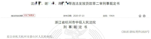 据中国基金报报道,实际上,民泰银行瓜沥支行在2013年至2016年期间也发生了“借名贷款”事件。杭州市萧山区人民法院2019年5月10日作出的判决显示,2013年10月至2016年2月,民泰银行瓜沥支行副行长倪某指使该银行工作人员违法向鲁某、赵某等人找来的不符合相应贷款条件的人员、公司发放贷款。期间,被告人沈某作为该行风险经理对参与违法发放的贷款共计118笔5290万元未尽审查职责,实际损失共计1010余万元。沈某因犯违法发放贷款罪,被一审判处有期徒刑2年6个月,缓刑3年,并处罚金7万元。