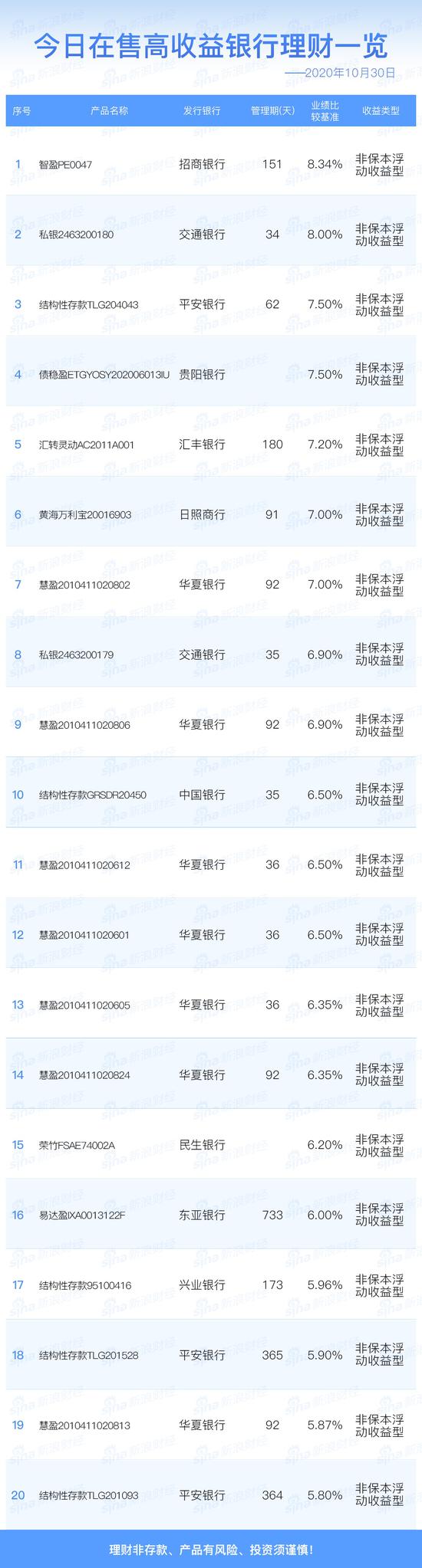 银行30日在售高收益理财产品一览