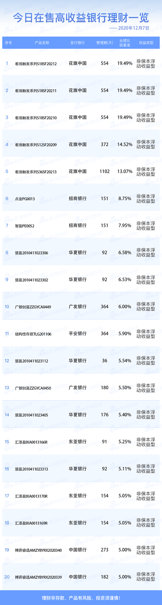 银行12日在售高收益理财产品一览