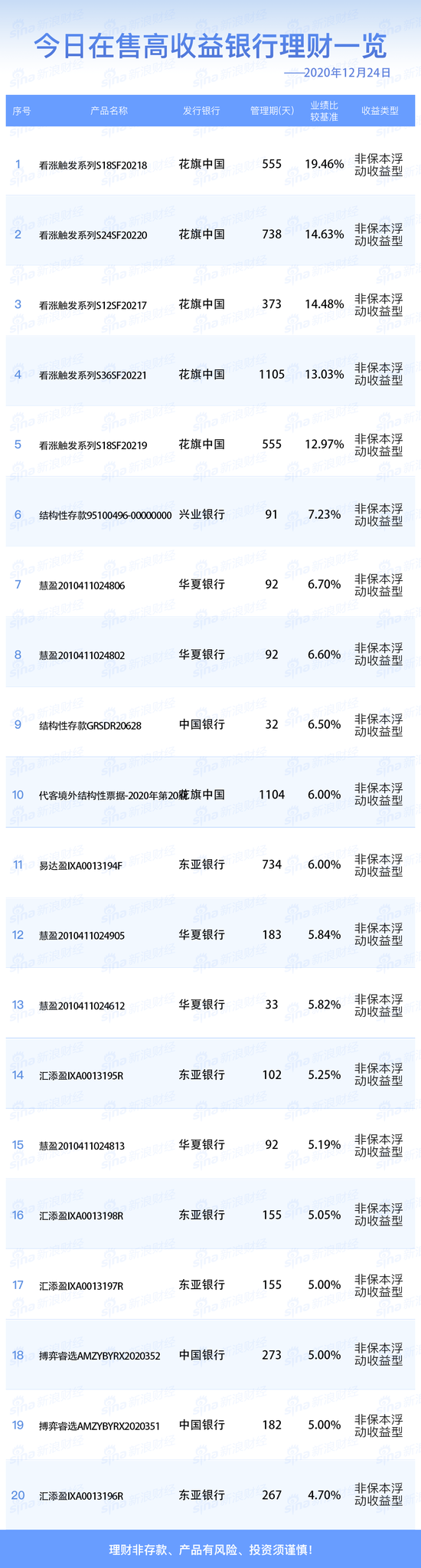 银行24日在售高收益理财产品一览