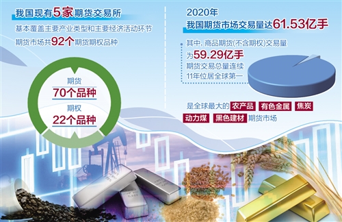 经过30年的探索发展,我国期货市场从无到有,从小到大,服务实体经济和国家战略的价值功能不断增强。目前,我国期货市场共70个期货品种和22个期权品种,基本覆盖主要产业类型和主要经济活动环节。我国商品期货交易总量连续11年位居全球第一,已发展成为全球最大的农产品、有色金属、焦炭、动力煤和黑色建材期货市场。