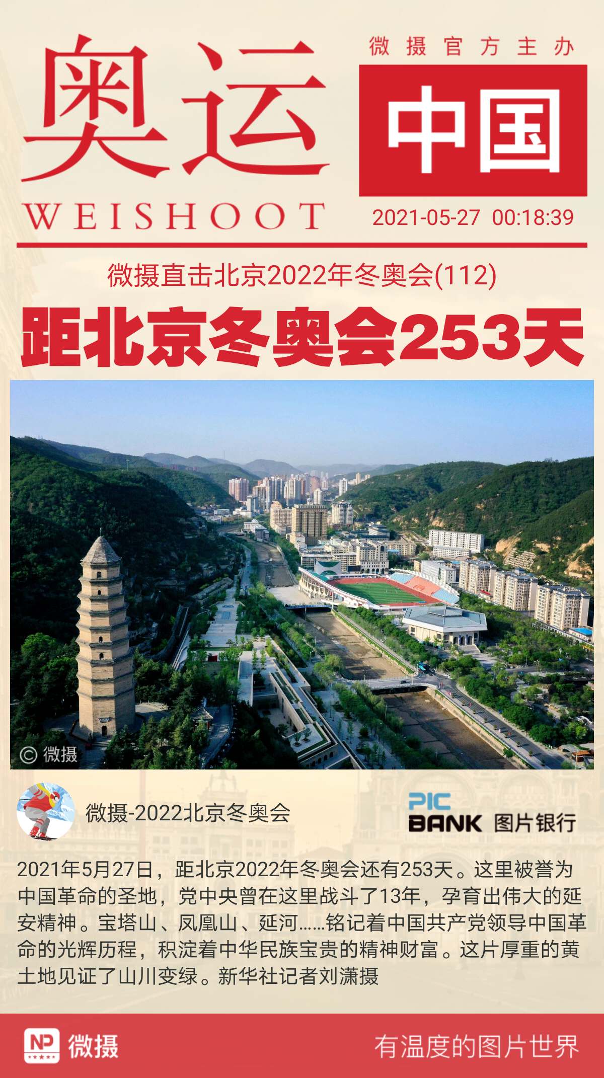 2021年5月27日,距北京2022年冬奥会还有253天。这里被誉为中国革命的圣地,党中央曾在这里战斗了13年,孕育出伟大的延安精神。宝塔山、凤凰山、延河……铭记着中国共产党领导中国革命的光辉历程,积淀着中华民族宝贵的精神财富。这片厚重的黄土地见证了山川变绿。