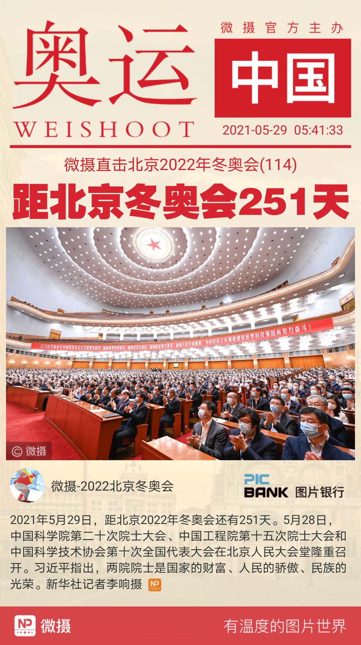 2021年5月29日,距北京2022年冬奥会还有251天。5月28日,中国科学院第二十次院士大会、中国工程院第十五次院士大会和中国科学技术协会第十次全国代表大会在北京人民大会堂隆重召开。习近平指出,两院院士是国家的财富、人民的骄傲、民族的光荣。