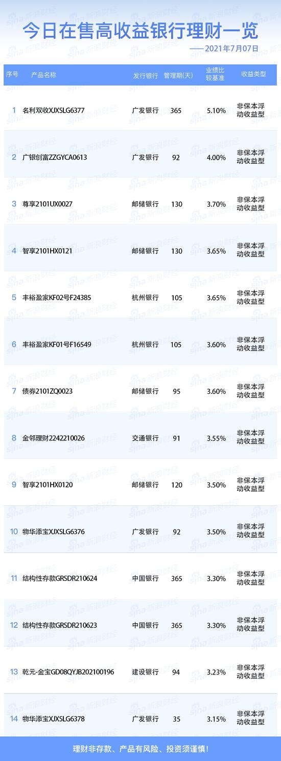 银行30日在售高收益理财产品一览