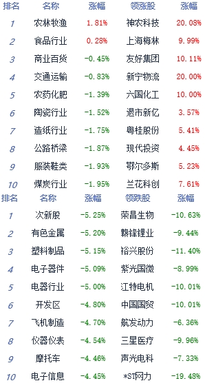 •   中国经济网北京4月11日讯 今日早盘,A股三大指数集体低开,随后持续下行,盘中,沪指跌超2%,深成指跌超3%,创业板指跌近4%;午后,指数持续走低,创业板指跌超4%。盘面上,物流、转基因、预制菜板块涨幅居前,盐湖提锂、MCU、数字货币板块跌幅居前。