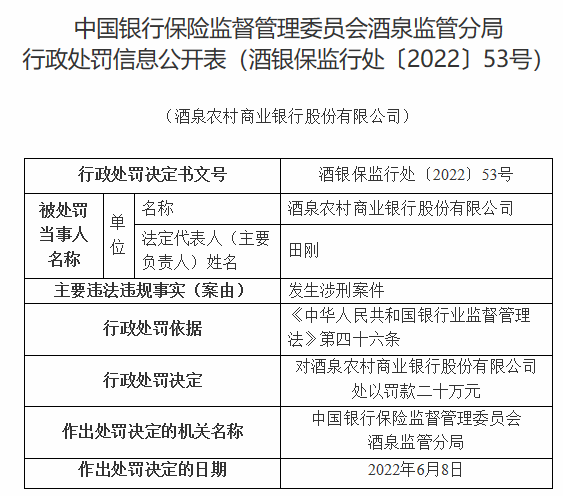 酒泉农商银行某支行长违法放贷300万 获刑3年半