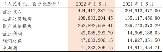 •   中国经济网北京7月12日讯 辽宁振兴银行股份有限公司(以下简称“辽宁振兴银行”)近日披露了2022年半年度报告。今年上半年,辽宁振兴银行实现营业收入4.24亿元,同比增长7.47%;实现净利润4123.32万元,同比增长176.52%。