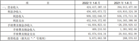 今年上半年,辽宁振兴银行实现利息净收入4.56亿元,上年同期为4.20亿元;实现投资收益967.37万元,上年同期为26.86万元。