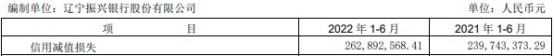 2022年1-6月,辽宁振兴银行信用减值损失2.63亿元,上年同期为2.40亿元。