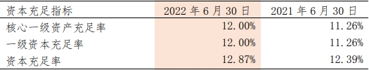 截至今年6月末,辽宁振兴银行资本充足率为12.87%,上年同期为12.39%;一级资本充足率为12.00%,上年同期为11.26%;核心一级资产充足率为12.00%,上年同期为11.26%。