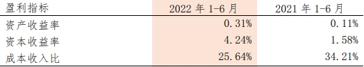 2022年1-6月,辽宁振兴银行的资产收益率为0.31%,上年同期为0.11%,增长0.20个百分点。