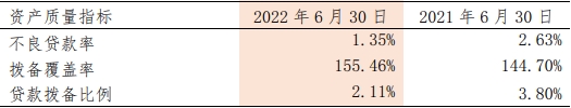 截至2022年6月30日,辽宁振兴银行不良贷款余额2.46亿元,上年同期为4.45亿元;不良贷款率为1.35%,上年同期为2.63%;拨备覆盖率为155.46%,上年同期为144.70%。