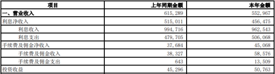 今年上半年,华融湘江银行实现利息净收入45.65亿元,上年同期为51.50亿元;实现投资收益5.08亿元,上年同期为4.53亿元。