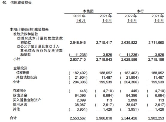 2022年1-6月,成都银行信用减值损失为25.54亿元,上年同期为29.06亿元,其中,发放贷款和垫款减值损失为26.38亿元,上年同期为27.19亿元。