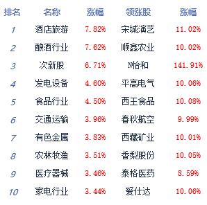 •   中国经济网北京11月1日讯 三大指数今日集体高开,随后展开震荡反弹。午后,三大指数集体上行。总体来看,个股迎来普涨,两市超4400股飘红。板块方面,酒店及餐饮、景点及旅游、机场航运等板块涨幅靠前,国防军工、计算机应用等板块涨幅较小。
