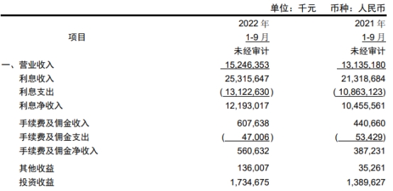 青农商行前三季营收降幅扩大