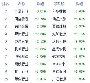截至收盘,上证指数报3083.40点,跌幅0.13%,成交额4545.47亿元;深证成指报11113.47点,跌幅0.24%,成交额6127.51亿元;创业板指报2375.21元,跌幅1.25%,成交额2051.08亿元。