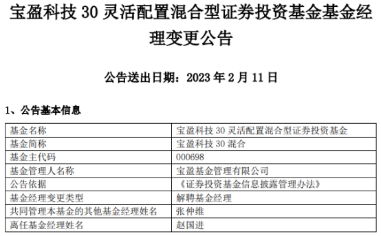 宝盈基础产业混合增聘张天闻赵国进离任