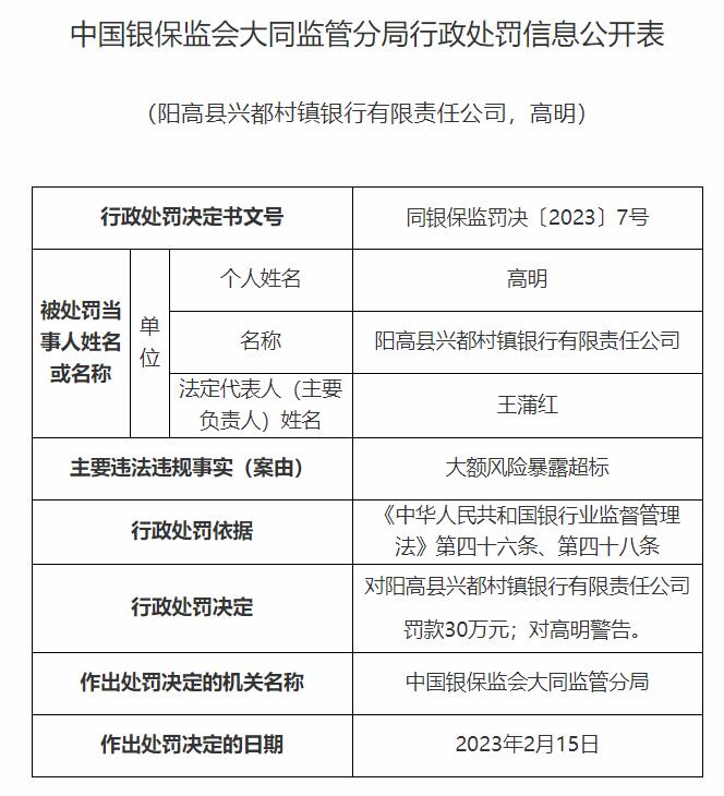 包头市昆都仑蒙银村镇银行合计罚没40万