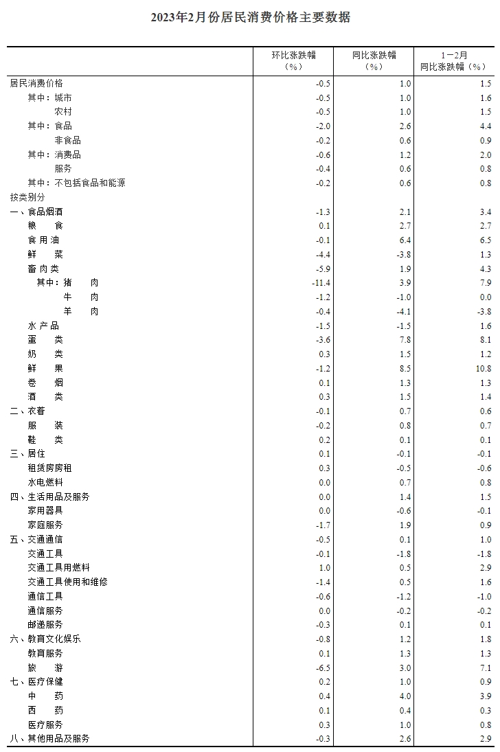 国家统计局:1月CPI数据出炉 同比上涨2.1%