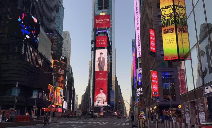 2025年10月5日Lamett乐迈石晶品牌全球代言人肖战广告重磅登陆纽约时代广场大屏