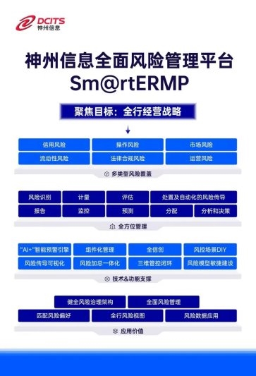 为配合某西北头部农信构建“数据整合+智能分析+风险协同”的一体化风控架构,神州信息首次将全面风险管理模式应用于国内省级农信用风险管理领域,结合成熟的管理组件和参数配置结合,打造风险管理能力中心,实现风险能力的快速输出。