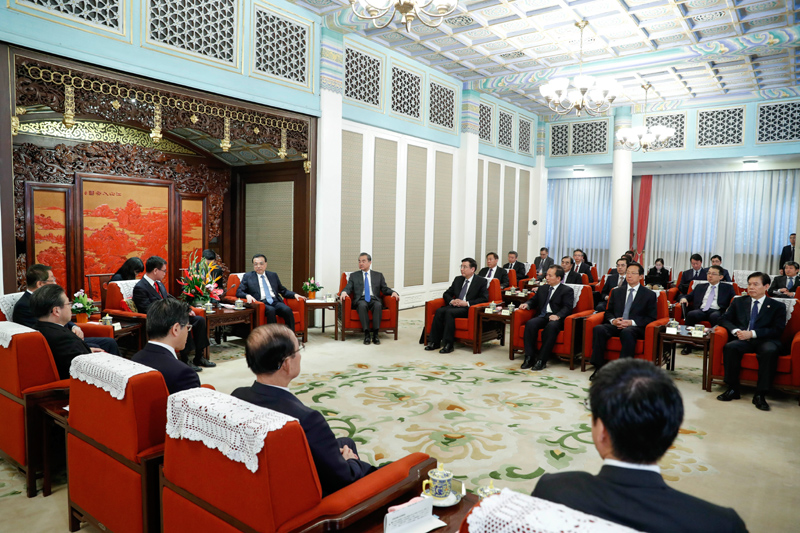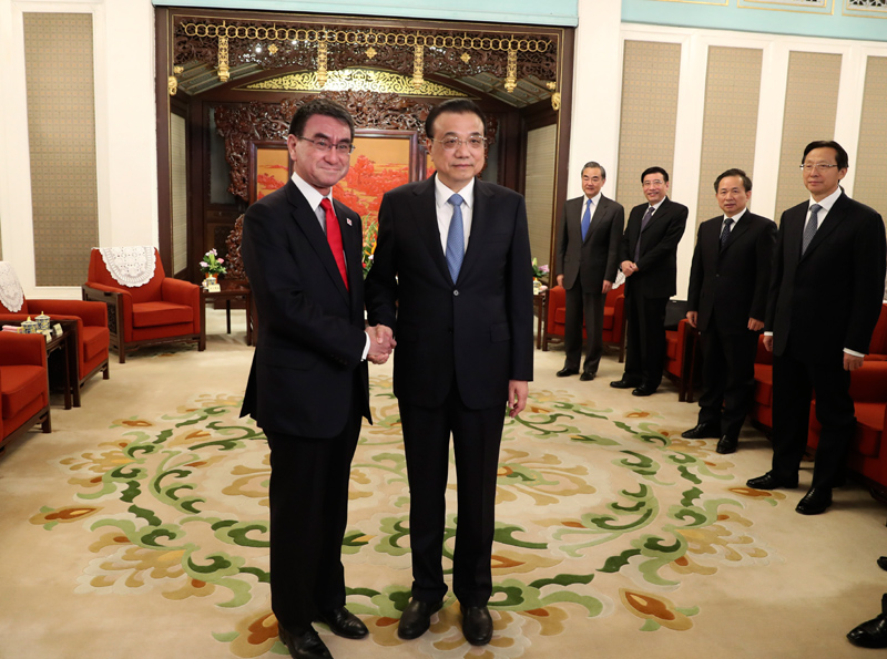李克强会见出席中日韩外长会的韩国外长和日本外相