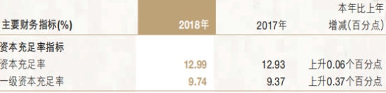 2018年,南京银行资本充足率为12.99%,上年同期为12.93%,上升了0.06个百分点;一级资本充足率为9.74%,上年同期为9.37%,上升了0.37个百分点。
