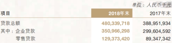 2018年,南京银行贷款总额为4803.40亿元,上年同期为3889.52亿元。其中,企业贷款为3509.66亿元,上年同期为2996.05亿元;零售贷款为1293.73亿元,上年同期为893.47亿元。