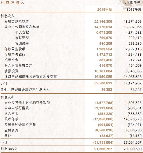 2018年,南京银行利息净收入为215.67亿元,其中,利息收入为535.01亿元,利息支出为319.34亿元。