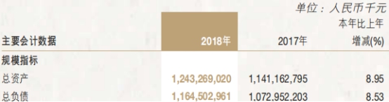 2018年,南京银行总资产为12432.69亿元,同比增长8.95%;总负债11645.03亿元,同比增长8.53%。