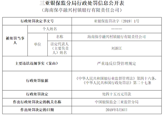 拜泉融兴村镇银行违规发放贷款被罚