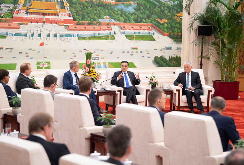 李克强会见出席中美企业家对话会的美方代表并座谈