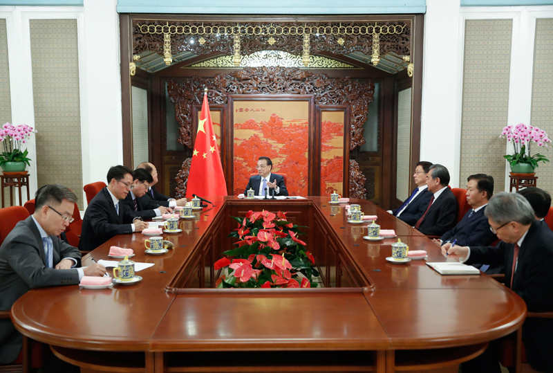 李克强会见出席中美企业家对话会的美方代表并座谈